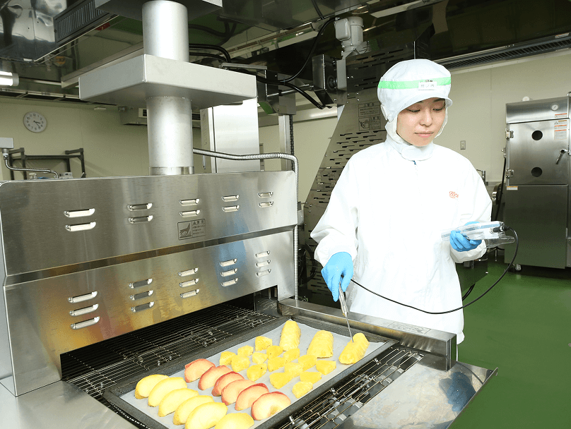 製品試作室には製造現場と同等の設備を整え、新素材や新技術の研究開発を通じて、新製品の開発や高品質でおいしさを追求した魅力ある製品づくりを推進しています。さらに、施設内には検査室を備え、保存検査を迅速に行うことで、スピード感のある製品開発を実現しています。営業・生産・開発が一体となった体制のもと、新たな価値と需要の創造に挑戦するとともに、子会社・大徳食品㈱と連携した共同開発にも取り組んでいます。