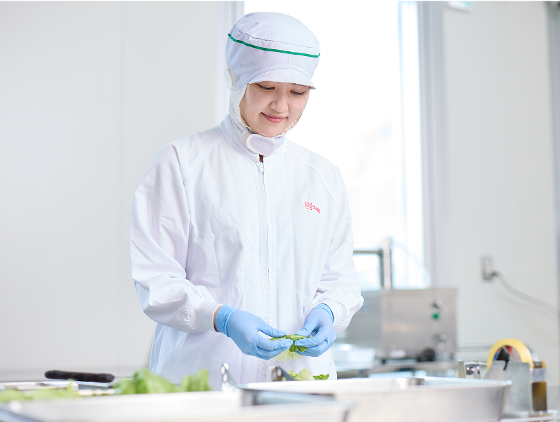 食品衛生管理センターは、市場買付検査、原料や製品の細菌検査、理化学検査、環境検査をはじめ、各事業所に配置した食品衛生管理センター分室員による製造ラインの衛生チェックや従業員への衛生指導を行っています。